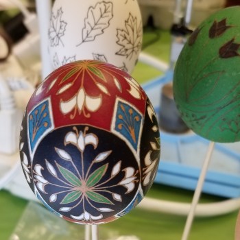 Karen Hanlon’s dyed and etched pysanka